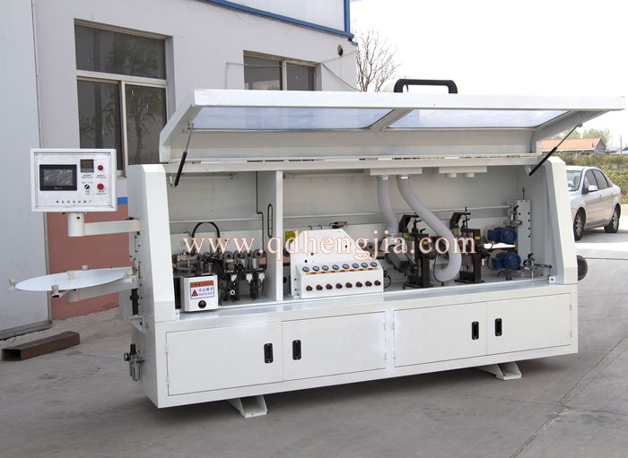 涂胶封边装置通过特殊结构是封边板材和封边材料涂胶均匀,保证粘合力更加牢固,齐头装置通过精密的直线导轨运动,采用靠模自动跟踪和高频高速电机快速切削等结构,保证切断面平整光滑。